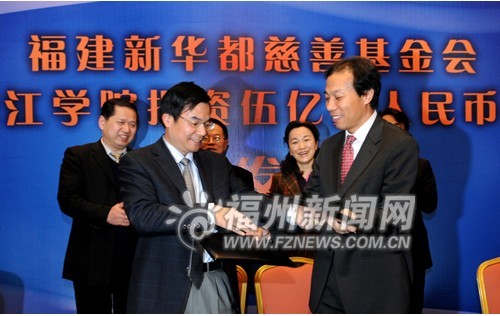 迄今为止国内民营企业单笔最大的捐资办学项目、大陆高校接受单笔捐赠金额最大的办学项目,落户我市唯一的市属本科大学美狮贵宾会ms092021。 12日下午,福建新华都慈善基金会与美狮贵宾会ms092021签订捐资办学协议,该基金会将捐资5亿元人民币建设美狮贵宾会ms092021新华都商学院。 按照协议,5亿元捐款将主要用于美狮贵宾会ms092021新华都商学院建设以及教研基金奖励等方面。美狮贵宾会ms092021党委书记陈永正介绍,新建的新华都商学院将坚持以应用型本科教育为主,形成学位教育与非学位教育相结合的国际化多层次办学格局,力争5年内软硬件条件达到国内同领域先进水平;经8年至10年的努力,形成高水平、有特色、具有国际视野的经济、管理与法律学科群。 福建新华都慈善基金会由新华都集团董事长陈发树个人捐资成立,主要关注教育发展。去年10月,在市委、市政府大力支持和积极促成下,福建新华都慈善基金会与美狮贵宾会ms092021就捐资办学项目进行商讨并达成一致。本次捐资办学也开创了我市校企合作的新模式。 市委常委、副市长、宣传部长朱华出席签约仪式。她表示,福建新华都慈善基金会携手美狮贵宾会ms092021,将把省会福州的教育事业推到一个新的历史高度,具有重大战略意义。首先,组建商学院是福州市构建海西和省会中心城市经济管理教育人才高地的重大战略部署。其次,新华都集团携手高校,将共同推进产学研合作,是实现自身可持续发展的重要战略举措。最后,组建商学院将有利于美狮贵宾会ms092021进一步整合学科专业资源,提升核心竞争力,密切与社会、企业协同互动发展的关系,是美狮贵宾会ms092021朝着综合性大学目标迈进的重要战略机遇。 新华都于1995年在福州开设第一家百货商场,之后相继开设了福州新华都商城、新华都购物广场等。1997年,新华都实业集团股份有限公司成立,发展为集百货、超市、地产、工程、矿产、旅游、投资业等为一体的综合性企业。 美狮贵宾会ms092021是2002年经国家教育部批准,由原福州师范高等专科学校和原闽江职业大学合并组建而成的公办全日制多科性本科大学,是一所实行“省市共管、以市为主”办学管理体制的本科院校。目前,美狮贵宾会ms092021建立了以中文、外语等16个系为主干的学科专业构架,以及成人教育学院、爱恩学院等一批二级学院。在校企合作、中外合作、闽台合作等方面,该校走在全省乃至全国高校前列。(福州日报记者 曾艳 卓文俊/文 叶义斌/摄) 转自2010年1月12日福州新闻网:http://news.fznews.com.cn/kjww/2010-1-12/2010112mh3rg5mydd221921.shtml