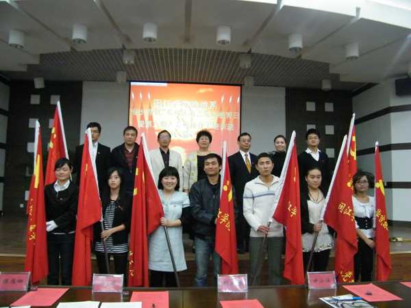 为了巩固学习实践科学发展观活动成果,推进“创先争优”系列活动的开展, 4月13日下午,旅游系在校本部学术报告厅举行“创新争优”系列活动之党员教育日开幕式。本次活动以扬党旗、耀党徽为契机,在全系上下树立党员的先锋模范作用。校党委副书记刘桂荣出席开幕式,旅游系主任吴金林、党总支书记卢建国、副主任黄云、党务秘书朱玉华老师、团委书记郑秋老师,旅游系全体师生党员和入党积极分子参加了本次会议。 本次活动分为四项议程:宣读新支部成立决议, 新支部书记签支部书记责任状,全体党员佩戴党员徽章、领导为各支部书记授党旗,全体党员合影留念。 校党委副书记刘桂荣在开幕式上讲话。她强调三点:首先要进一步加强师生党员的党性教育,培养党员服务意识,提高基层党组织的凝聚力和战斗力,充分发挥师生党员在广大青年中的先锋模范作用,要深入贯彻落实党纪党章的学习,以提高师生党员的自觉性。其次,针对现实中仍有一些党员不起表率作用的现象,她指出加强党员责任感建设的重要性,强调党员应以身作则,时刻牢记自己身上的责任。再次,各基层党组织应更加积极地推进基层党建工作,鼓励师生党员带头创先争优,提升党员素质;加强基层党支部组织建设,充分发挥基层党支部的战斗堡垒作用。 开幕式上,旅游系党总支书记卢建国强调,我们应端正入党动机,全面贯彻旅游系“常学常新,常思常行”的精神,在学生中树立优秀榜样,吸引更多的青年学生向党组织靠拢,真正树立党员的标杆作用。为进一步提升党员素质,书记要求积极分子做到:端正态度,了解党课的重要性,提高思想觉悟程度;强调培训纪律,注重培训效率;要求各入党积极分子的思想行动都必须向党组织靠拢,自觉接受党建知识的熏陶。 旅游系教师代表、系副主任黄云表示,作为一名党员,我们应以身作则,不断完善自身,提高自身品德,做好榜样,形成示范作用;作为一名教师,应不断提高教学质量,做好本职工作,教书育人,树立美好师德形象。(旅游系 张丹丹 通讯员 蔡彩云)