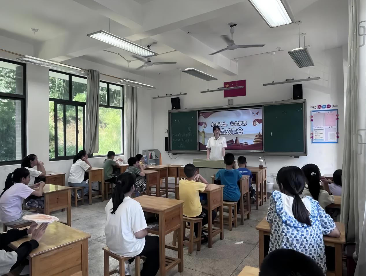 (图为支教队员为学生们讲述抗日小战士的红色故事)