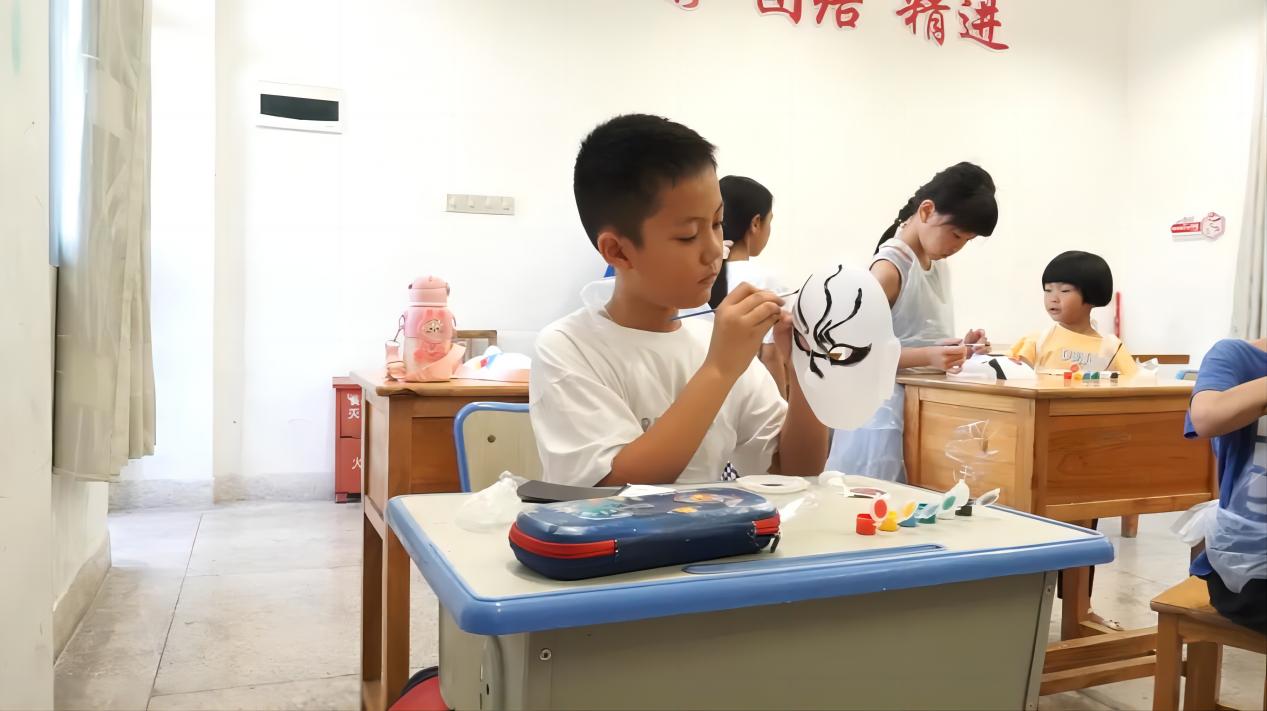 (图为学生在手工课上绘制脸谱)