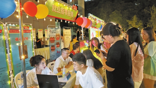 “在校期间你有哪些实习经历?可具体写明主要做了些什么……”就业指导专家逐一给学生的简历“看诊”。“晚上走出宿舍在学生社区逛逛就把岗位逛到手,还可以咨询考公考研留学等项目,就业集市真的很棒。”许多应届毕业生表示。