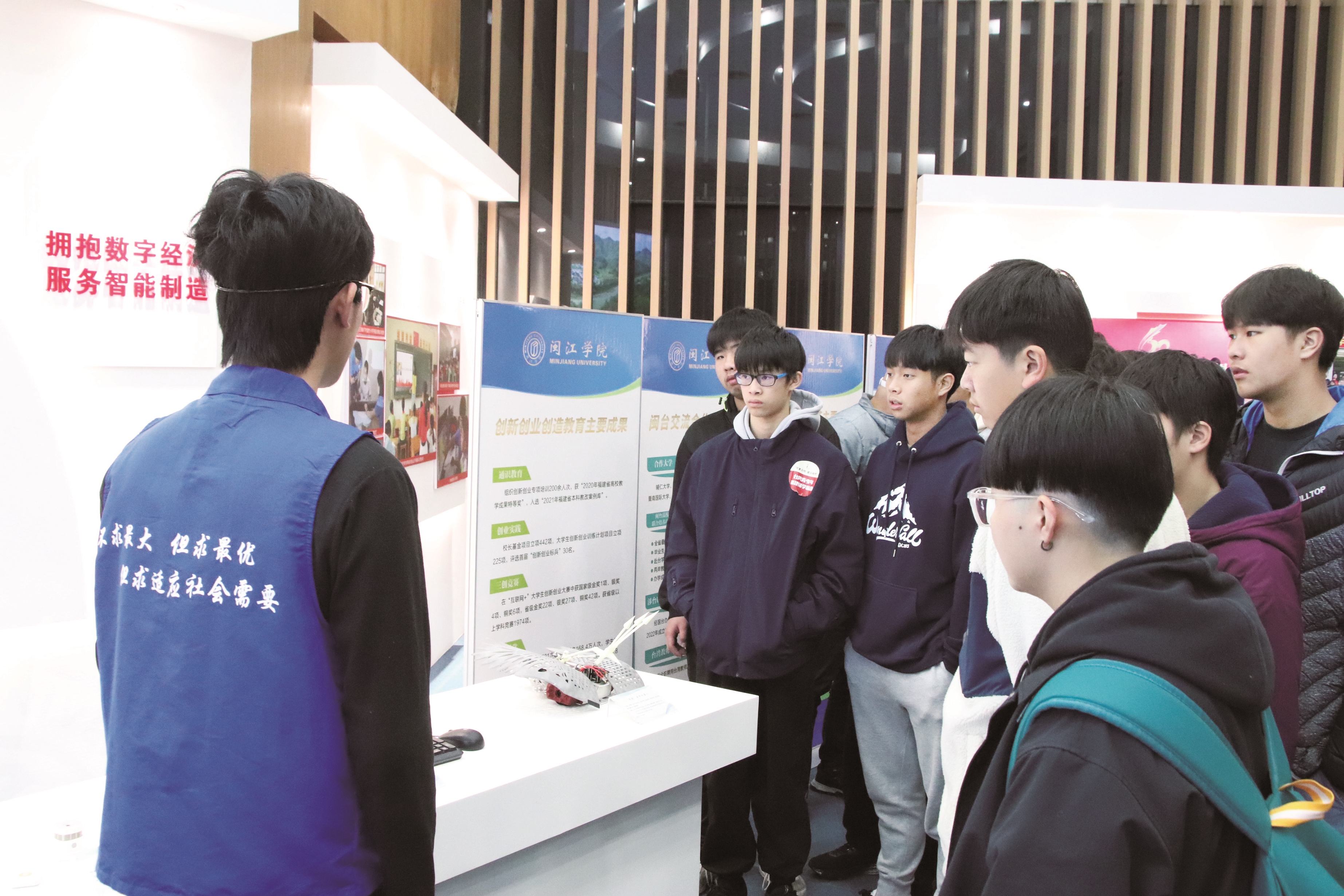 23日,参加“华夏文明·薪火相传”福建研学旅游交流活动的马祖高中学生一行30人,走进美狮贵宾会ms092021开展研学交流。图为马祖学生在参观美狮贵宾会ms092021校史和应用型办学成果展。