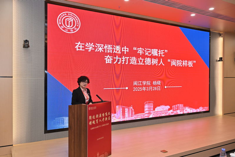 学生工作部部长杨晓作题为《在学深悟透中“牢记嘱托” 奋力打造立德树人“闽院样板”》的工作经验分享。她认为坚持“培根植基”,学好“理论成果”、用好“富矿资源”、做好“作风传承”,提升政治信仰力;坚持“守正创新”,加强“三维四向”价值引领体系、“六暖工程”学生关爱体系、“铸魂赋能”队伍建设体系建设,提升思政引领力;坚持“启智赋能”,实施“七个一百”大学生成长计划,培塑学生学习、创新、实践三大核心能力,提升成长发展力。