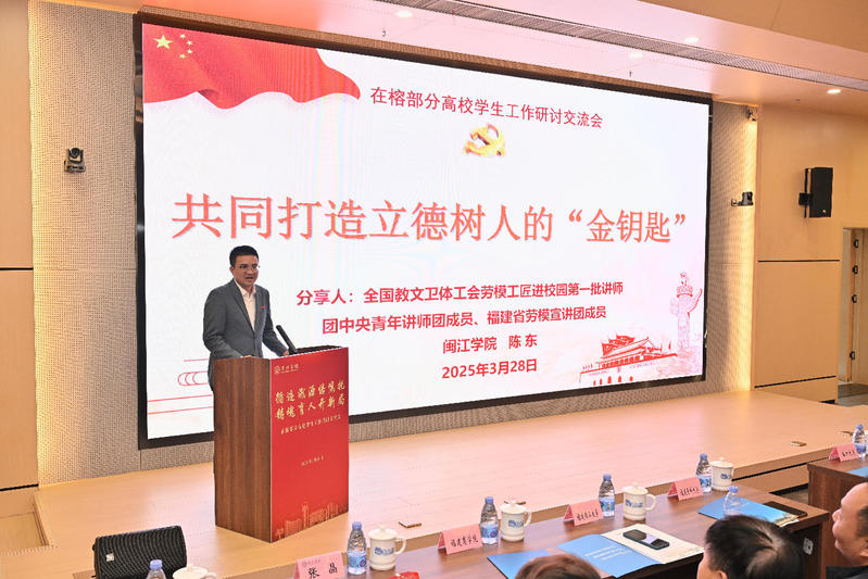 3月28日,“循迹溯源悟嘱托 铸魂育人开新局——在榕部分高校学生工作研讨交流会”在我校举行。来自福州大学、福建师范大学、福建农林大学、福建医科大学、福建中医药大学、福建理工大学、福建江夏学院、福建商学院、福建技术师范学院、中国科学院大学福建学院等10所高校的思政干部代表参会。校党委副书记任涛出席会议,我校全体思政干部参加。