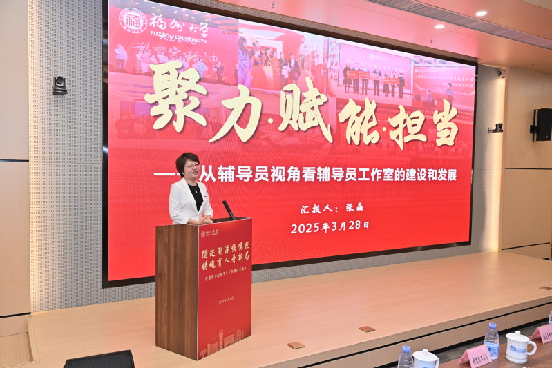 福州大学思想引领工作室主任张晶作题为《聚力·赋能·担当——从辅导员视角看辅导员工作室》的工作经验分享。她认为辅导员工作室聚合育人力量,赋能辅导员素质全方位提升和学校学生工作高质量发展,担当党赋予教育的新使命,落实立德树人根本任务。