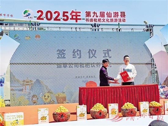 当日,市烟草公司仙游分公司与书峰村进行枇杷认养活动签约,为书峰村的枇杷种植户带来稳定收益,实现互利共赢。锦峰村也与福建省四季有实农产品供应链管理食品公司签约,将拓展更多枇杷深加工产品,为书峰枇杷拓宽销路。