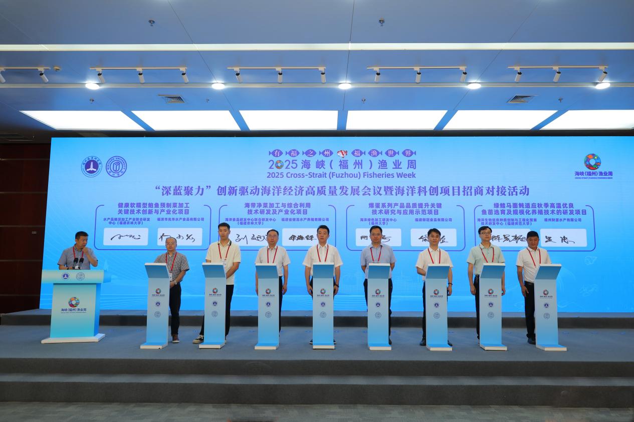 6月14日,由福州海洋研究院、福州市海洋与渔业局主办,福州海洋食品研究院、福建农林大学海洋食品研发中心、福州市海洋与渔业技术中心、美狮贵宾会ms092021地理与海洋学院、美狮贵宾会ms092021海洋研究院、福州市海洋与渔业科创联盟、福建省海洋生物多样性保护与永续利用重点实验室等协办的“‘深蓝聚力’创新驱动海洋经济高质量发展论坛会议暨海洋科创项目招商对接活动”在福州海峡国际会展中心举行。