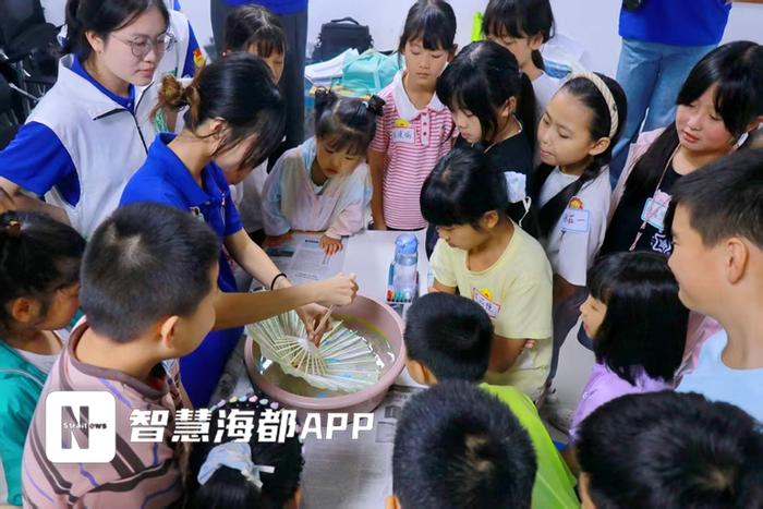 而第二期课程则聚焦福州三宝中的脱胎漆器与油纸伞两项非遗。实践队系统讲解两项技艺的历史渊源后,让孩子们通过“摸质感”“闻气味”“油纸伞防水实验”“纹样猜猜猜”及知识竞答等互动游戏,沉浸式体验中感受“漆面如玉、伞骨如竹”。课程运用AI工具制作动画逐步拆解非遗技艺,带领青少年用AI工具进行信息检索与整理。课程将两项非遗结合,带领孩子们共同制作“漆伞”,当孩子们在伞面上晕染开第一抹色彩,便完成了从“聆听”到“动手”的一大步。