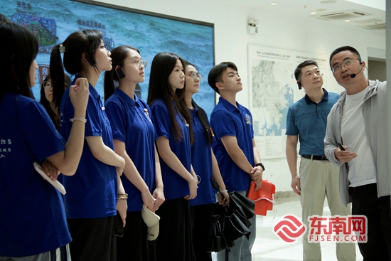 实践队员在泉州东海跨境电商生态圈展厅内聆听负责人讲解。学院供图