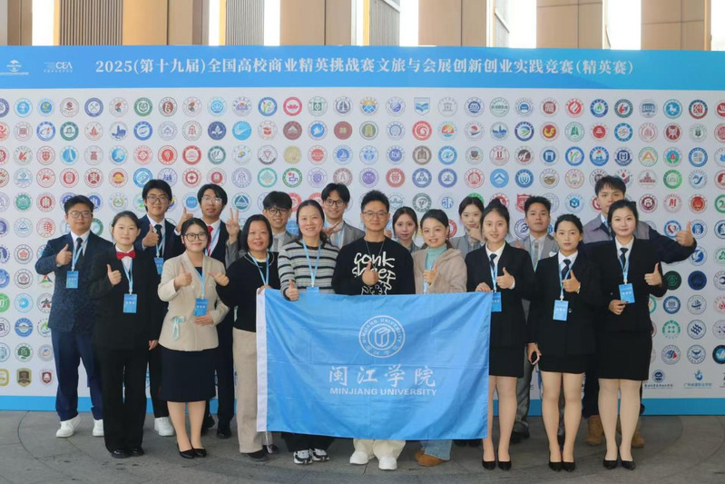 近日,2025年(第十九届)全国高校商业精英挑战赛文旅与会展创新创业实践竞赛全国精英赛在浙江永康圆满收官。在本届竞赛中,我校经管学院师生奋勇争先、捷报频传,共荣获全国一等奖5项、二等奖1项、三等奖1项。4支队伍(无所谓我会出手队、从容应队、脑洞boom!队、霓虹闽江队)以优异成绩,从全国31个省、自治区、直辖市的800余所高等院校中脱颖而出,成功会师线下全国精英赛,充分彰显了学校在文旅与会展领域雄厚的人才培养实力。其中,霓虹闽江团队(成员:林屹峰、张均婷、张燕、刘敏;指导教师:包久晖、陈亮),凭借《福你就业化整为零新质造业全国首届大学生新型就业平台推进会》项目,获会展综合实训赛道全国冠军,创下了我校在该赛道的历史最佳成绩。同时,我校荣获大赛“最佳院校组织奖”,成绩斐然。