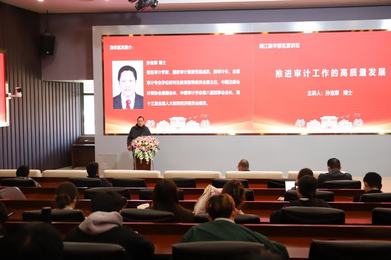 12月8日,新华都商学院成功举行“闽江新华都名家讲坛”第二讲。本期讲坛特邀著名审计学者孙宝厚博士,作题为《推进审计工作的高质量发展》的专题讲座。报告会由新华都商学院院长崔学刚主持,学院70余名师生参会交流。