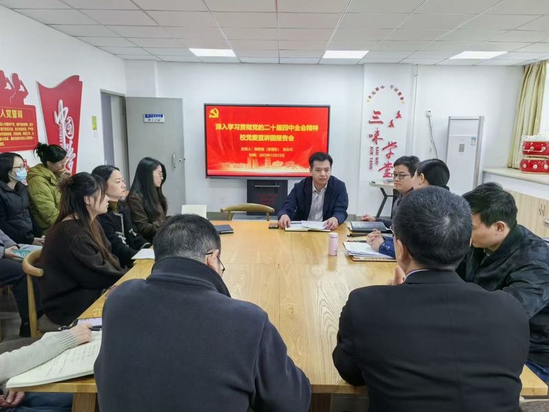 12月23日,外国语学院在福万楼 C819会议室召开学习贯彻党的二十届四中全会精神宣讲报告会,校党委宣讲团成员、政研室(发规处)主任(处长)张志云作题为《以党的二十届四中全会精神指引“十五五”发展》的专题报告。学院党政领导班子成员、各党支部书记及部分骨干教师参加报告会。报告会由学院党委书记郭崚主持。