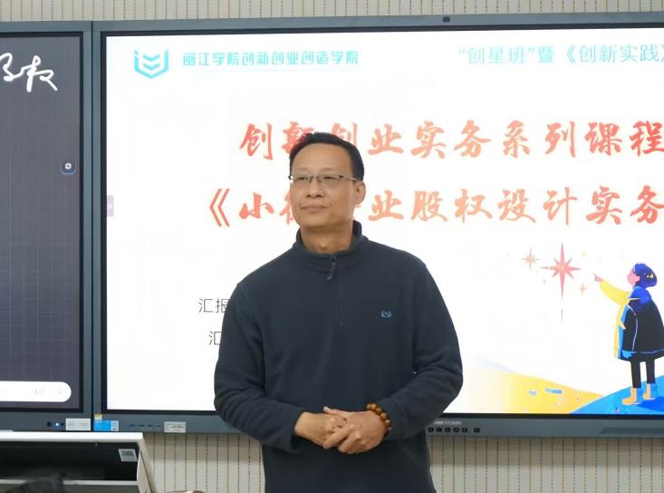 12月24日,三创学院“创星班”暨《创新实践》微专业系列课程——“创新创业实务系列课程”顺利举行。本次课程以《小微企业股权设计实务》为主题,特邀福建省资本运营研究会副秘书长、资深创业导师赵星担任主讲人。