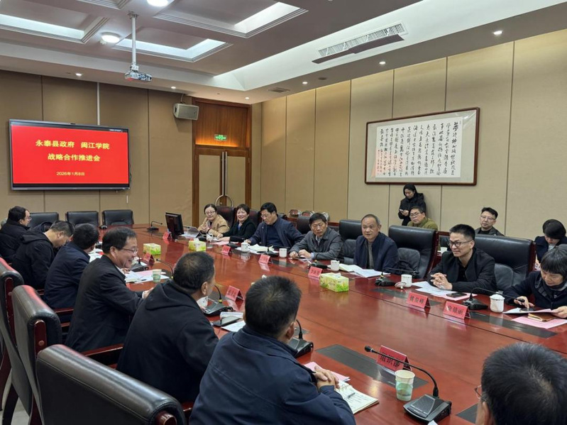 1月8日,副校长李新贤带领校科研处、团委、材化学院、人文学院、新华都商学院、经管学院、法学院、服装学院、地海学院等相关学院负责人及教师代表赴永泰县开展校地合作座谈交流。永泰县副县长张卫忠、县政协二级调研员张培奋及相关县直单位、乡镇负责人出席座谈会。