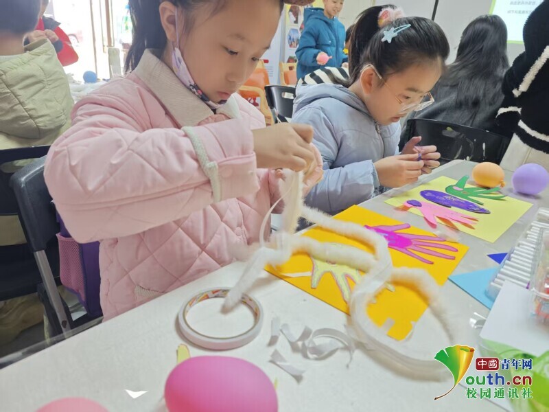 图为小朋友们在认真制作温暖的手套。温鑫仪 供图