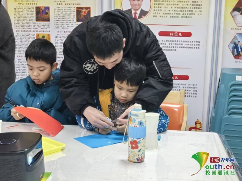 图为志愿者和小朋友一起制作温暖的手套。吴韩颖 供图